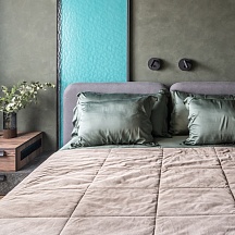 В качестве спальной поверхности дизайнеры подобрали анатомический матрас Feel высотой 22 см. Он беспружинный, гипоаллергенный, изготовлен из натуральных материалов.