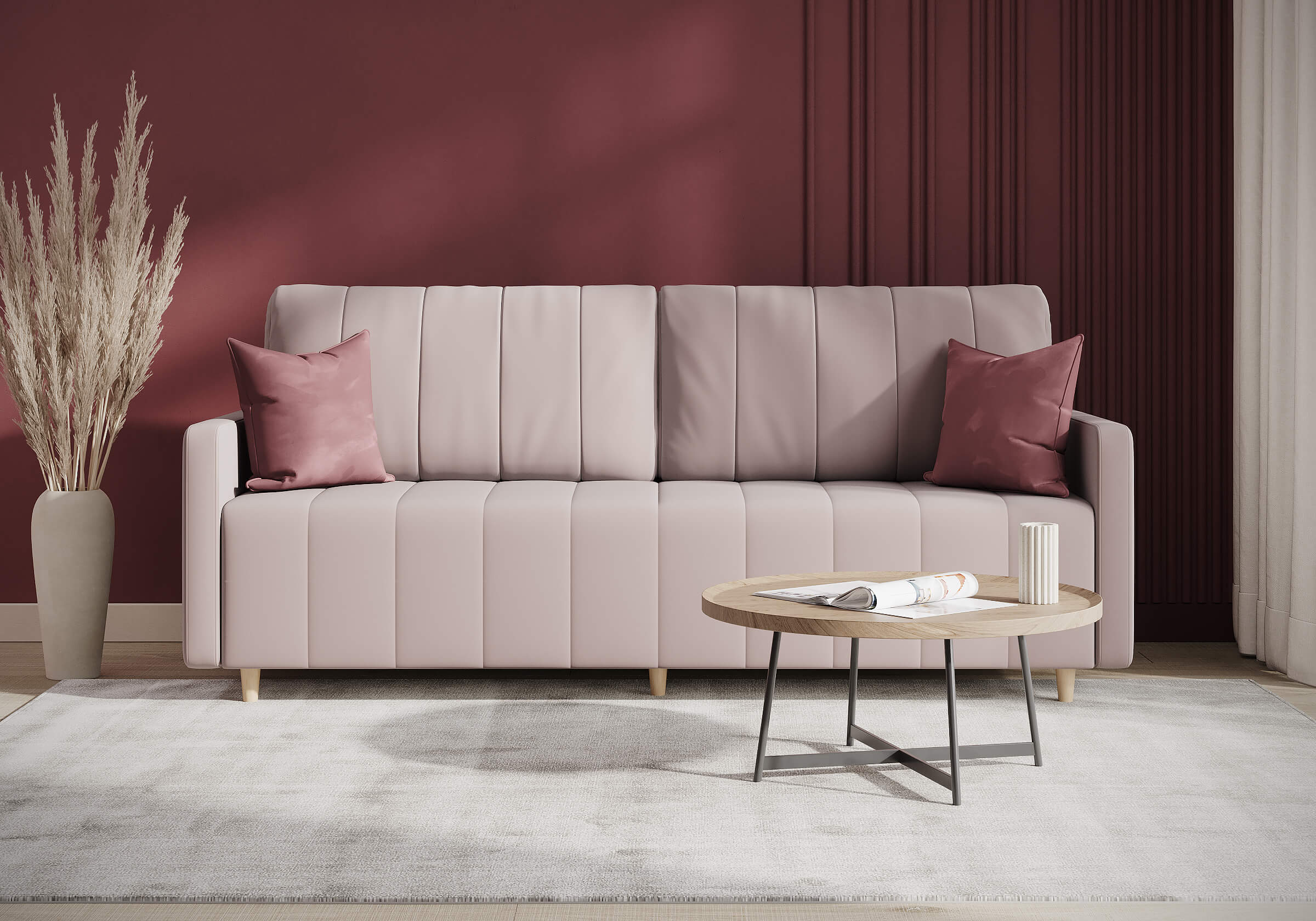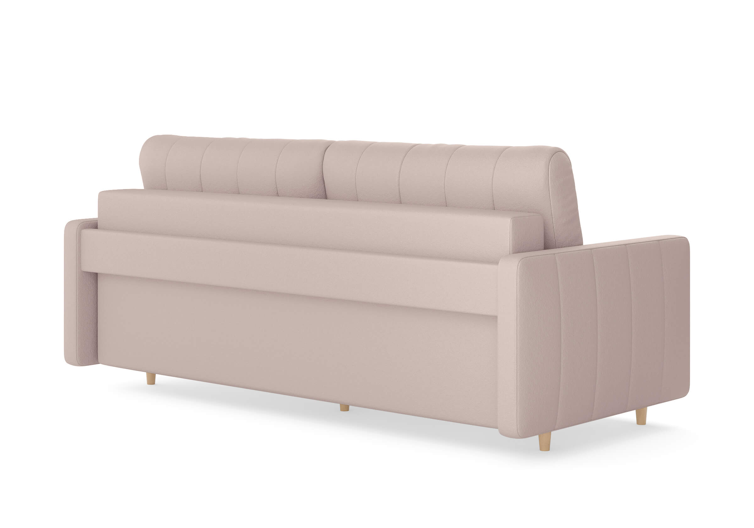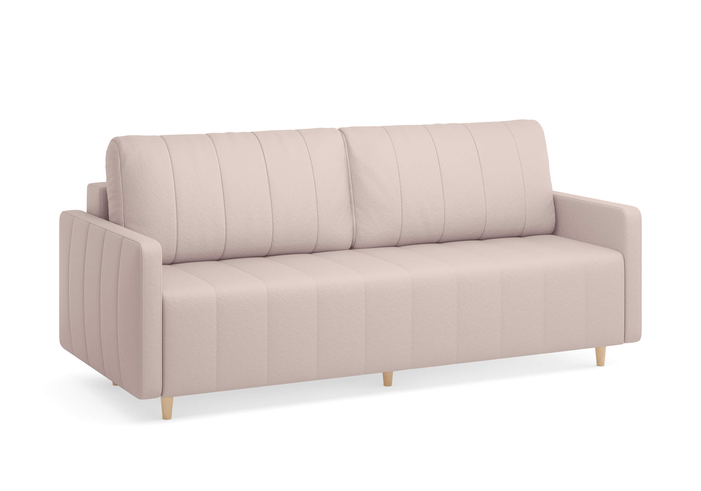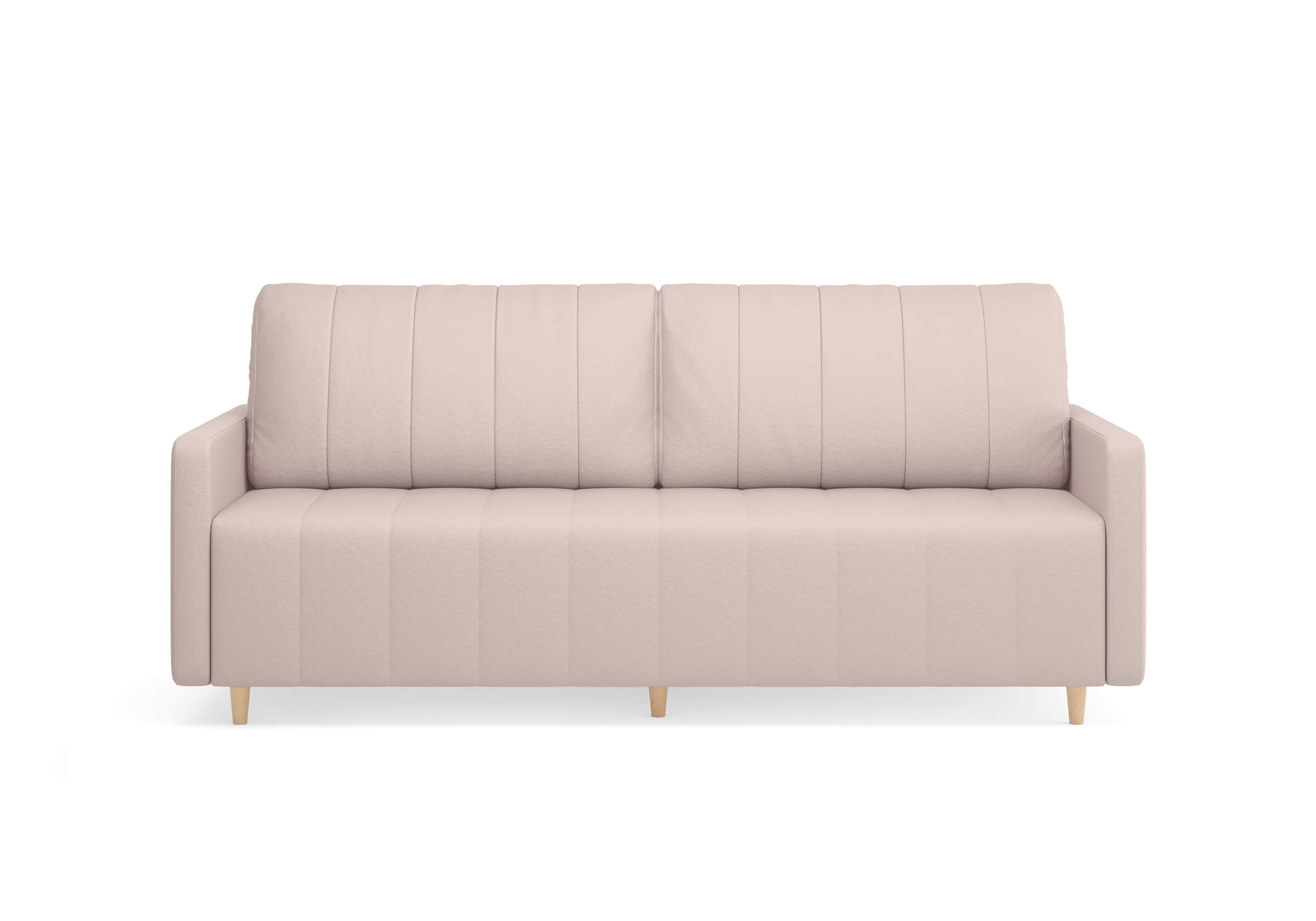 Современный дизайнерский диван с вертикальной стежкой на высоких опорах станет прекрасной частью интерьера гостиной и идеальным выбором для тех, кто ценит чистоту линий, функциональность и уют. Декоративные подлокотники придают дивану законченный вид, благодаря чему его можно разместить как у стены, так и в центре комнаты. Диван оснащён шагающим механизмом трансформации «тик-так», который сохранит напольное покрытие. В диване предусмотрен вместительный бельевой ящик для оптимального использования пространства. А матрас средней жёсткости на независимом пружинном блоке прекрасно подходит как для комфортного отдыха, так и для правильного сна