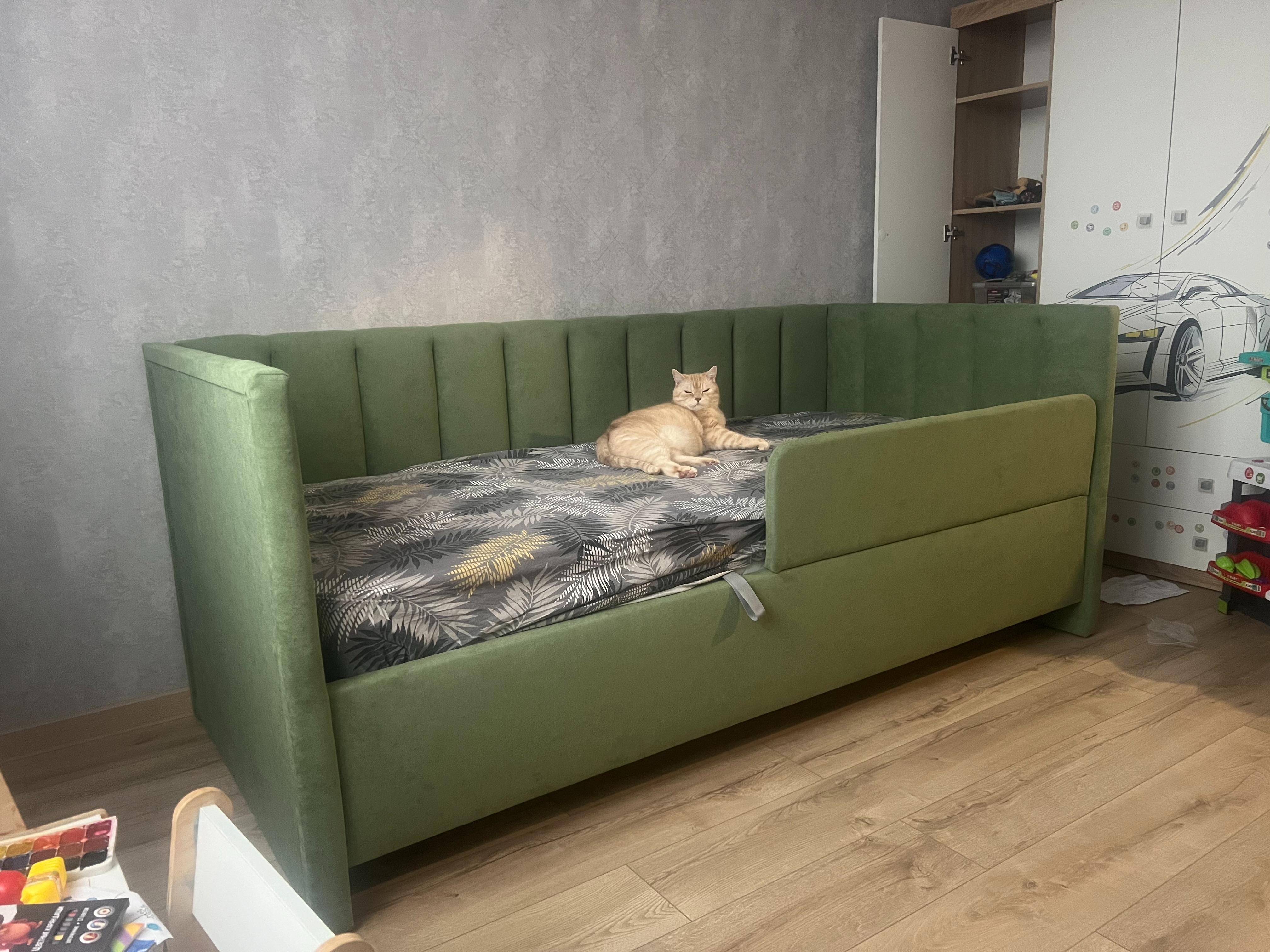 Односпальная кровать Alice с высокими боковыми спинками. Модель универсальна для квартир с небольшой площадью, детских и подростковых спален, гостевых комнат. Мягкие элементы создают атмосферу уюта, а благодаря размерному ряду, защитному бортику, множеству цветов и фактур кровать подойдет как малышам, так и подросткам, как мальчикам, так и девочкам. Защитный бортик приобретается дополнительно, легко устанавливается на левую или правую сторону кровати. Увеличенная прочность кровати достигается за счет сочетания усиленных металлических уголков, центральной царги и закладных деталей. Модель укомплектована ортопедическим основанием, при желании в нее можно установить подъемный механизм с бельевым коробом. Опоры отсутствуют, функцию опор выполняют основная и боковые спинки. Расстояние до царги способствует легкой уборке под кроватью, в том числе роботом – пылесосом. Исполнение доступно во всех видах ткани