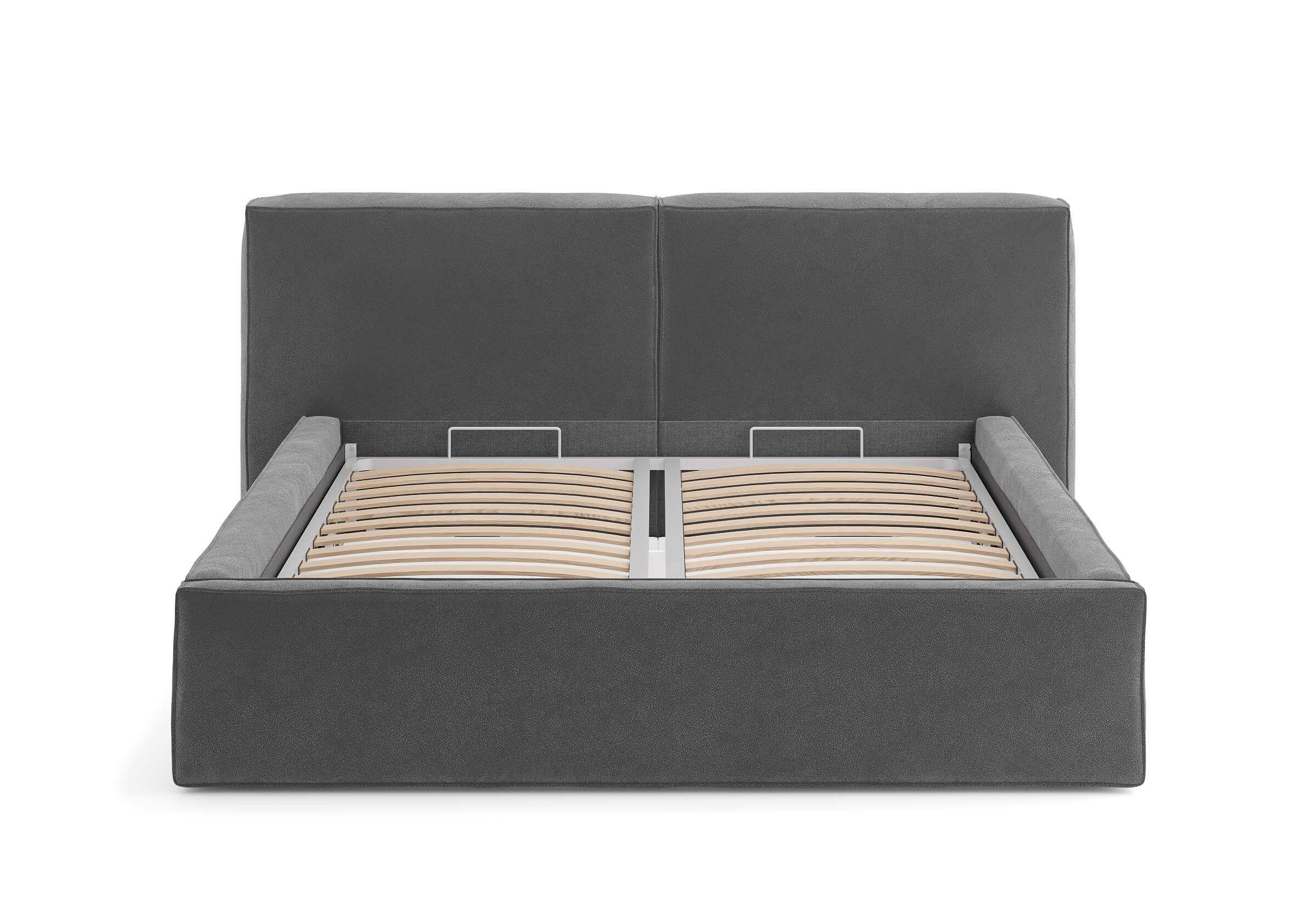 Возможна установка подъемного механизма со вместительным бельевым ящиком. Дно бельевого ящика легко сдвигается для обеспечения уборки под кроватью.