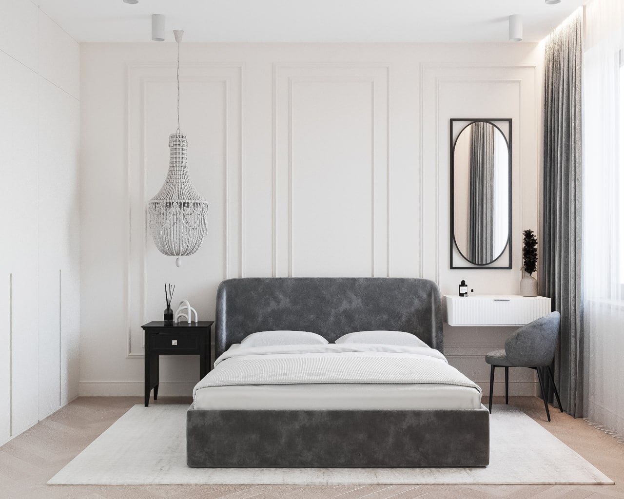 Эту кровать я выбрала потому, что она стильная, удобная и нет ножек – под ней мыть не надо. По бокам стильные ограничители – они дают тень и утром солнце не бьет в глаза. Рекомендую!