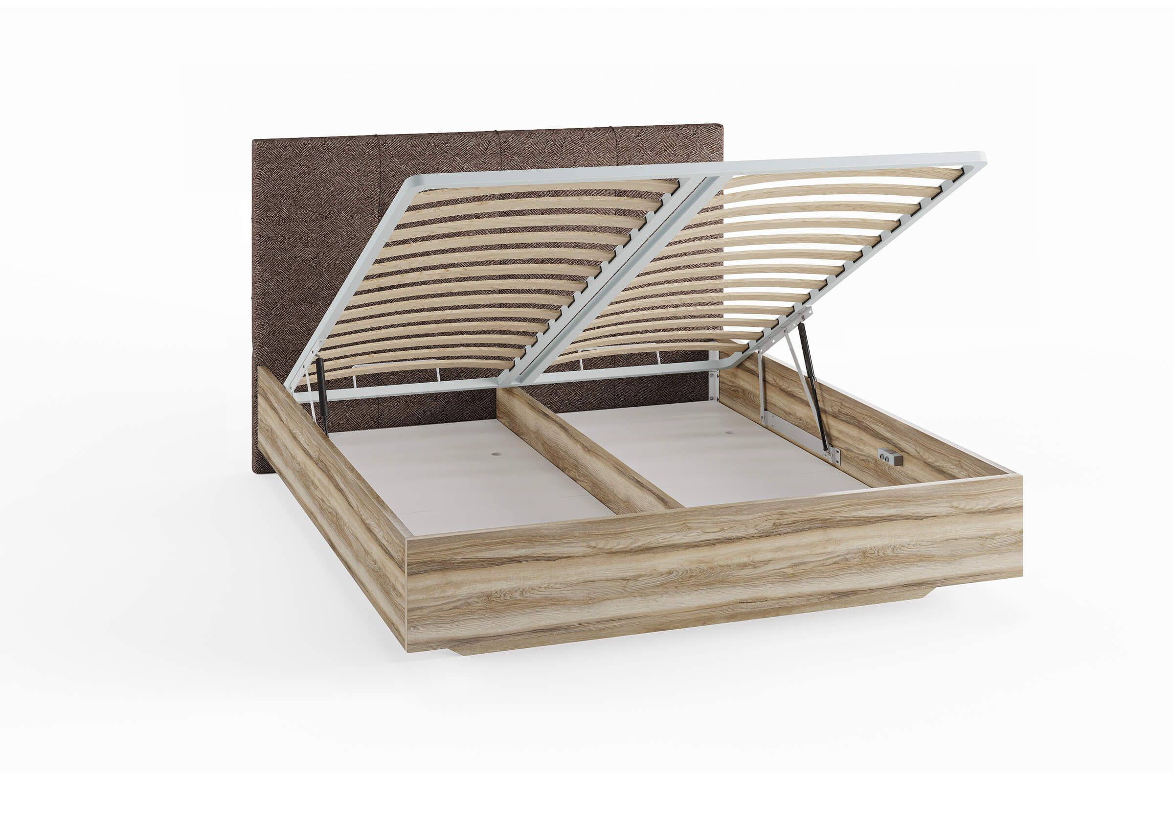 Возможность установки подъемного механизма со вместительным бельевым коробом, 13 см глубиной. Дно бельевого ящика легко сдвигается, что позволяет просто убраться под кроватью.