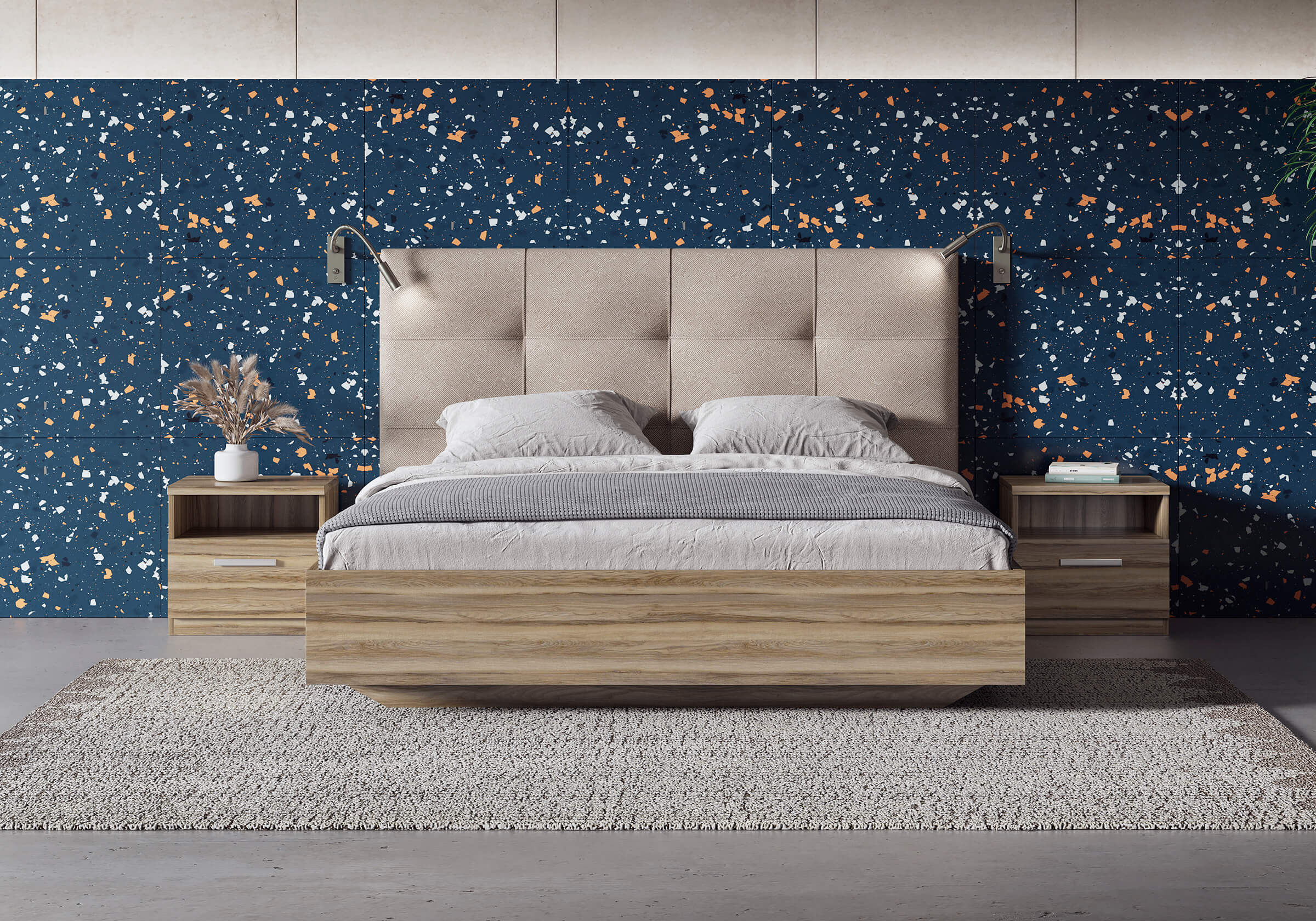 Царги из ЛДСП увеличенной толщины придадут строгость и надежность. Благодаря сочетанию усиленных металлических уголков, ребер жесткости и эксцентриковой стяжке конструктив кровати получается жёстким и прочным.