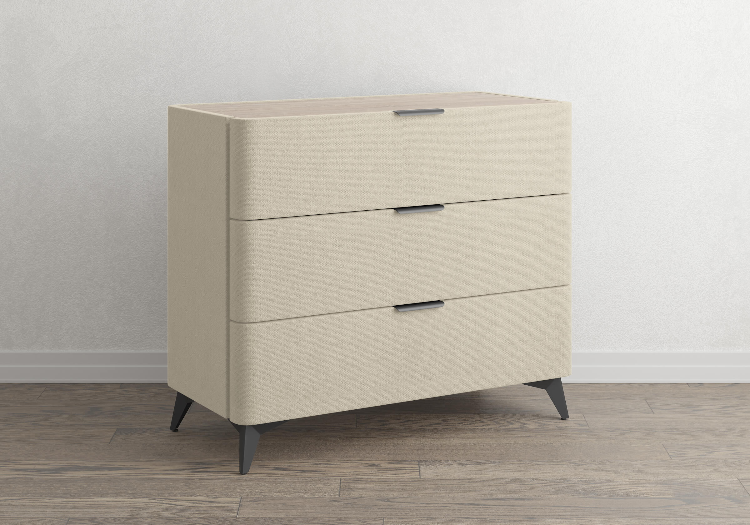 Комод Sheldon — образец слияния функциональности и эстетики. Поверхность, выполненная из ЛДСП в цвете «Дуб Сонома», создает контраст с мягким корпусом. Изящные металлические ручки и высокие металлические ножки подчеркивают его утончённый дизайн. Ящики на скрытых направляющих оснащены доводчиками, обеспечивая мягкое закрывание, а скруглённые углы добавляет стиля и удобства.